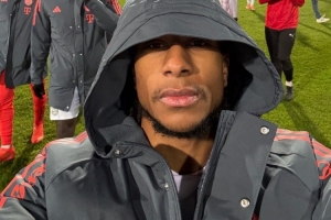 奥利塞当选全场最佳球员,赛后他在场内进行自拍,仍是一脸严肃。