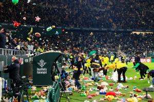 又是一年圣诞节,皇家贝蒂斯主场下起玩具雨