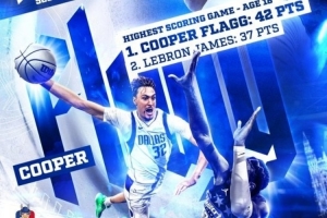 杜克官方晒出了弗拉格19岁前的几项纪录的数据海报:
