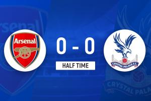 上半场补时2分钟。半场战罢,阿森纳0-0水晶宫。