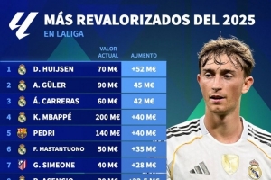 2025年西甲身价上涨榜:赫伊森+5200万欧居首,姆巴佩+4000万欧