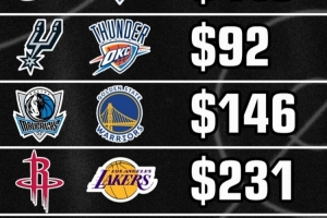体育资讯12月25日讯 今日美媒Buckets统计了明天5场圣诞大战的最低票价,具体如下:
