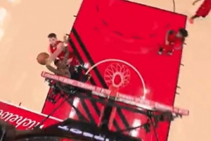 GIF-科林斯海报扣篮被帽劈叉 但克林根犯规了