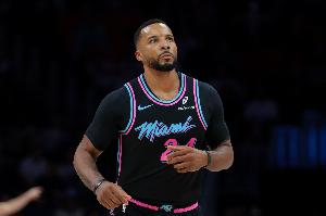 上半场,热火后卫鲍威尔出场17分钟10投5中,三分5中1、罚球1中1拿到全队最高12分外加1篮板1助攻1抢断,正负值-3。
