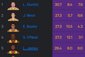 1、东契奇 场均30.7分