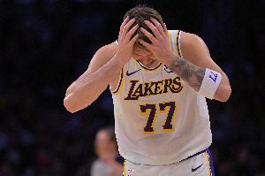 体育资讯12月31日讯 NBA常规赛,湖人末节崩盘106-128不敌活塞,东契奇似乎身体依旧有点不适。