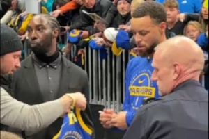 库里赛前为黄蜂球迷签名
