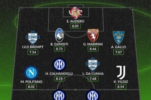 whoscored本轮意甲最佳阵:劳塔罗领衔国米3将,伊尔迪兹在列