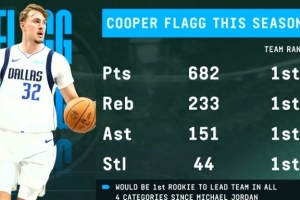 体育资讯1月8日讯 据统计,本赛季弗拉格有四项数据在队内第一,有望成为继乔丹之后首位做到这一点的新秀。
