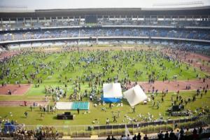 球迷对当地官员发出嘘声、丢水瓶,最终大批球迷冲进场内对体育场进行破坏。