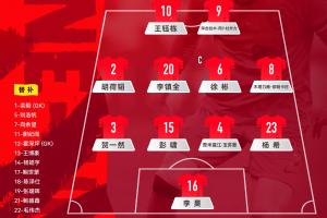 U23国足首发:16-李昊、2-胡荷韬、3-贺一然、4-吾米提江、15-彭啸、23-杨希、6-徐彬、20-李镇全、8-木塔力甫、9-拜合拉木、10-王钰栋