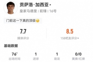 下一篇: 维尼修斯本场5射4正进1球+2错失进球 9过人4成功 获评8.1分