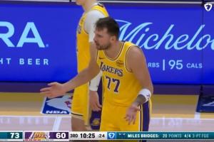 在第三节还剩10分25秒时,东契奇认为自己被犯规,找裁判理论吃到个人赛季第10个技犯。