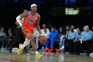 此役,亚历山大依旧高效表现但三分不准,他出战36分半,投篮23中12,三分7中1,罚球4中4,得到29分4篮板5助攻1盖帽5失误。
