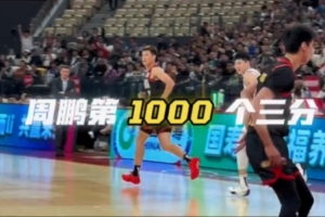 深圳对阵同曦的比赛,第二节8分46秒,周鹏外线手起刀落,生涯第1000记三分应声入网!千记三分,是荣誉,更是初心不改!致敬周鹏,致敬永不褪色的拼搏精神!