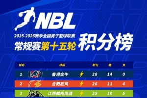 【积分榜】2025-2026赛季NBL常规赛积分榜(截至第十五轮结束)