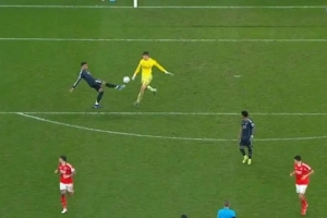 在比赛最后几分钟的这个动作中,特鲁宾准备开球门球,当他准备用脚踢出时,姆巴佩虽然没有对他进行犯规动作,但阻止了他执行开球动作,因此进球被判无效。