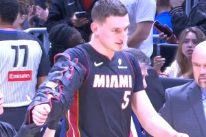 在本场比赛中,约维奇刚上场12秒重摔伤退,右臂带着夹板离场。