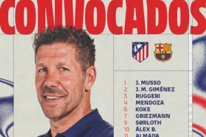 马竞国王杯对巴萨大名单:卢克曼、阿尔瓦雷斯、格列兹曼在列