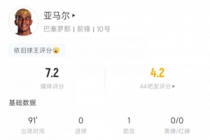 体育资讯12月17日讯 西班牙国王杯1/16决赛,巴萨2-0击败第三级别球队瓜达拉哈拉。本场比赛,亚马尔首发打满全场。