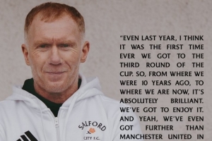 体育资讯2月14日讯 本轮足总杯,英乙索尔福德城对阵曼城。赛前,索尔福德城股东斯科尔斯谈到球队。