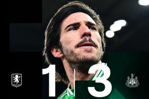 体育资讯02月15日讯 足总杯比赛,纽卡3-1逆转维拉,喜鹊中场托纳利打进2粒进球。