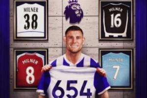 英超历史出场王!40岁米尔纳首发出场,迎来个人英超第654次出场