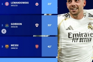 体育资讯3月12日讯 在本轮欧冠淘汰赛,皇马3-0大胜曼城,巴尔韦德在42分钟就完成帽子戏法,以下为欧冠历史淘汰赛阶段最快完成帽子戏法榜单: