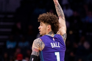 上半场拉梅洛·鲍尔11投7中,三分9中7砍下21分8助攻。