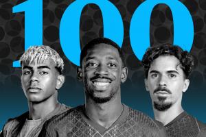 91-莱奥(AC米兰)、92-赫伊森(皇马)、93-格瓦迪奥尔(曼城)、94-诺伊尔(拜仁)、95-格林伍德(马赛)、96-范德芬(热刺)、97-安东尼(贝蒂斯)、98-阿诺德(皇马)、99-迪马尔科(国米)、100-格列兹曼(马竞)