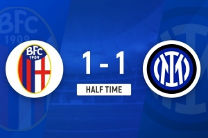 半场-国米1-1博洛尼亚 小图拉姆2分钟闪击建功奥尔索里尼点射