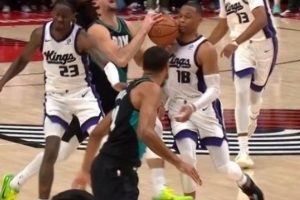 昨日NBA常规赛,开拓者加时134-133力克国王,加时赛最后时刻,阿夫迪亚强攻造成威少犯规,两罚全中完成绝杀。